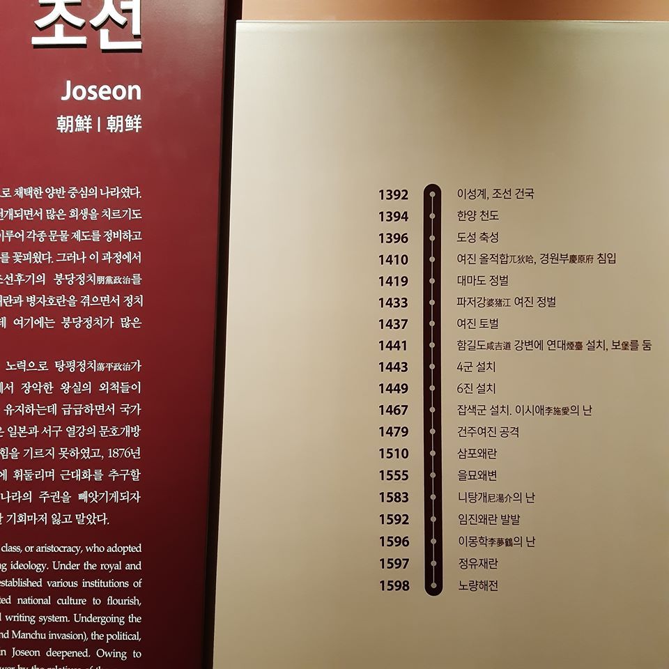 ความดีงามของพิพิธภัณฑ์เกาหลีคือ ถึงแม้ป้ายนิทรรศการจะไม่ค่อยแปลเป็นภาษาอังกฤษ (มีแปลเป็นญี่ปุ่นและจีนเยอะกว่า) แต่จะมี timeline และ infographic แทบตลอดทางเดิน ดังนั้นถ้าอ่านประวัติศาสตร์มาบ้างจะพอเดาได้ว่าของชิ้นนี้อยู่ยุคสมัยไหม เกี่ยวกับเหตุการณ์สำคัญอะไร