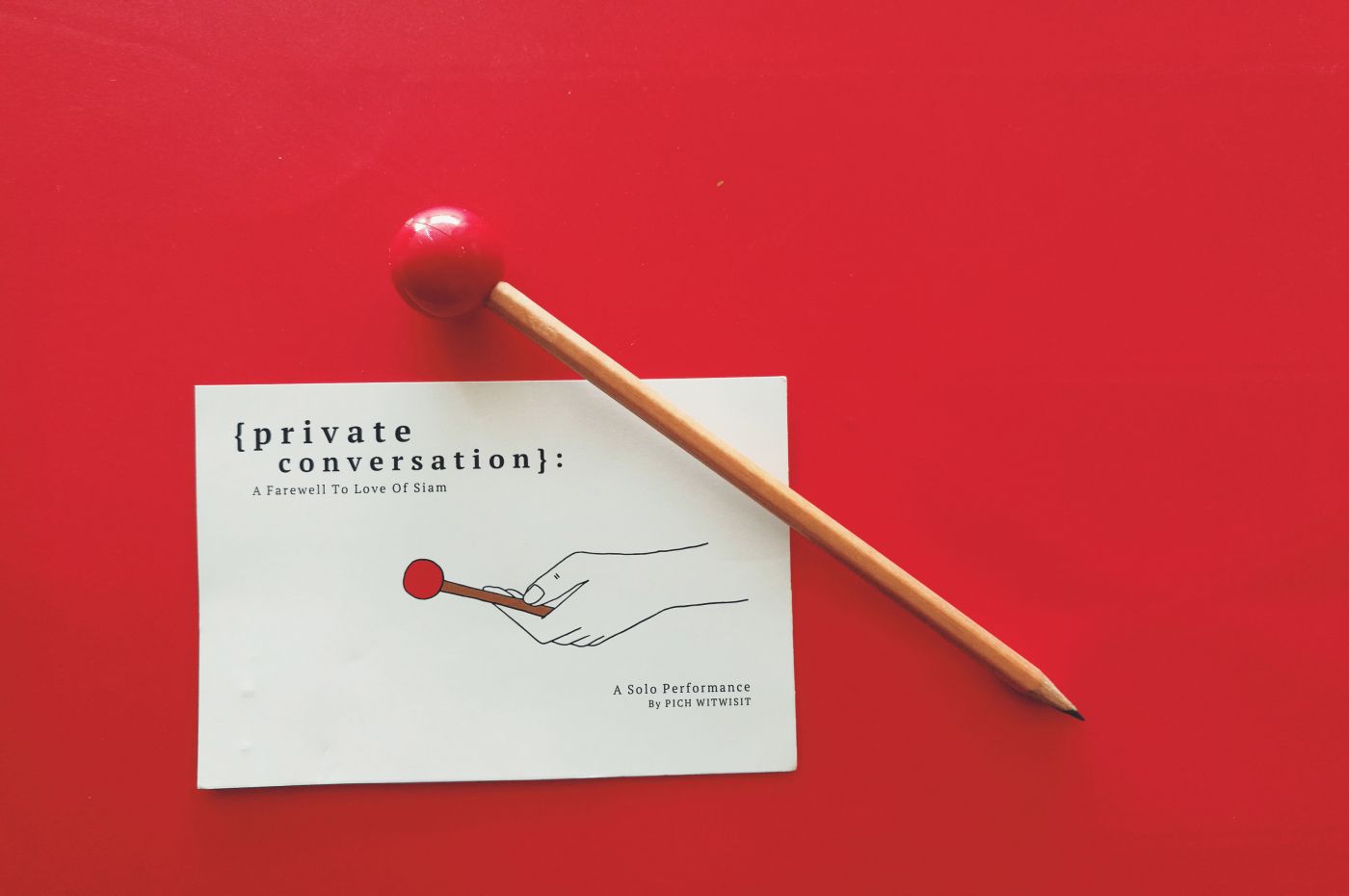 ในการแสดง {private conversation} : A Farewell To Love Of Siam นี้ พิชพาเราไปคุยกับมิว ที่จริงจะเรียกว่าคุยก็คงไม่ถูกซะทีเดียว ออกแนวสะสางเคลียร์ปัญหาที่ติดค้างเพื่อการที่จะก้าวข้ามอะไรสักอย่างน่าจะเป็นคำพูดที่ตรงกว่า ว่าตลอดเวลาหนึ่งทศวรรษ มิวเป็นยังไง พิชเป็นยังไง ทั้งคู่ส่งผลต่อชีวิต กันและกัน อย่างไร