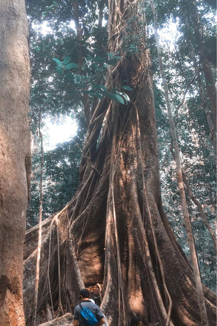 พี่ปูนำทีมเดินไปถึงต้นสมพงขนาดใหญ่ที่มีอายุเกือบร้อยปี และมีรากต้นไทรโอบลำต้นไปแล้วครึ่งหนึ่ง