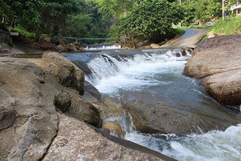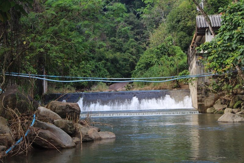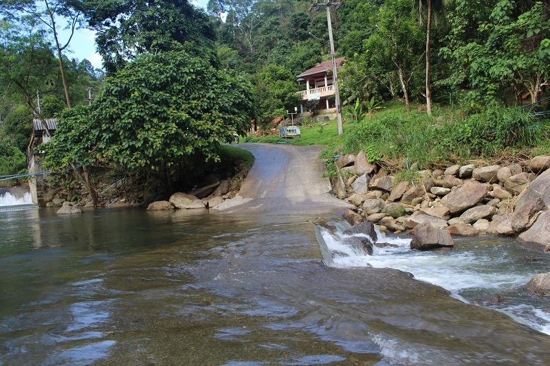 พอถึงคิวรถที่สะพานของหมู่บ้านคีรีวง ก็เลยตะโกนบอกลุงคนขับว่าไปส่งบ้านป้าดา น้ำตกวังไม้ปัก