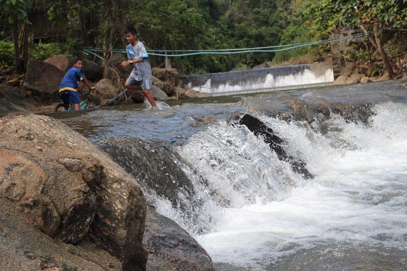 แอบถ่ายน้องที่มาเล่นน้ำและปั่นจักรยานกลางน้ำตกวังไม้ปัก ช็อตนี้ดูน้องกำลังสนุกแบบธรรมชาติดี
