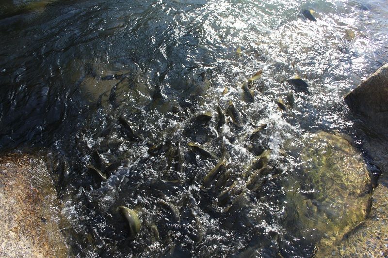 ปลาที่อยู่ในน้ำตกวังไม้ปักนี้คือปลาพวง ตัวใหญ่มาก และดูพยายามว่ายทวนกระแสน้ำ นึกถึงปลาแซลมอนเวลาดู National Geographic จริงๆนะ