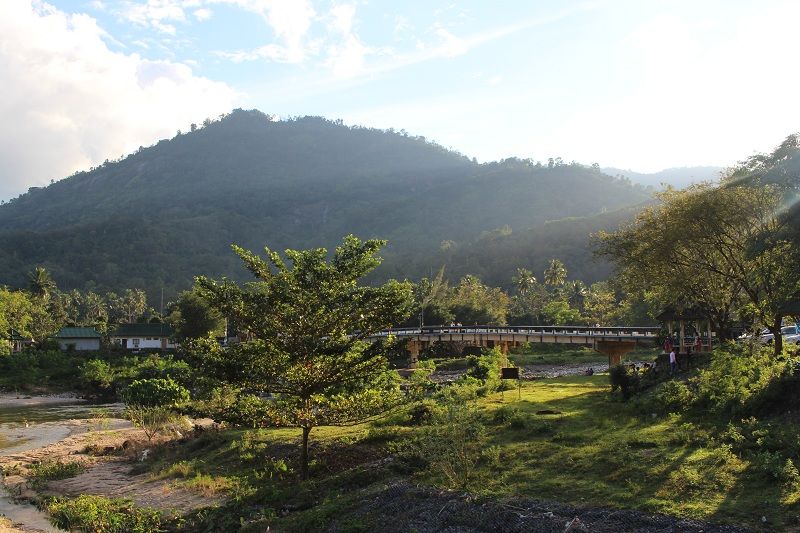 และนั่นก็คือสะพานคีรีวงที่เราแวะถ่ายเซลฟี่ตัวเองเต็มจอแล้วในช่วงเช้า เป็นสถานที่ที่มีคนแวะเซลฟี่ตลอดเวลา ป้อมทางขวามือคือท่ารถสองแถวนครศรี-คีรีวง นั่นเองจ้า