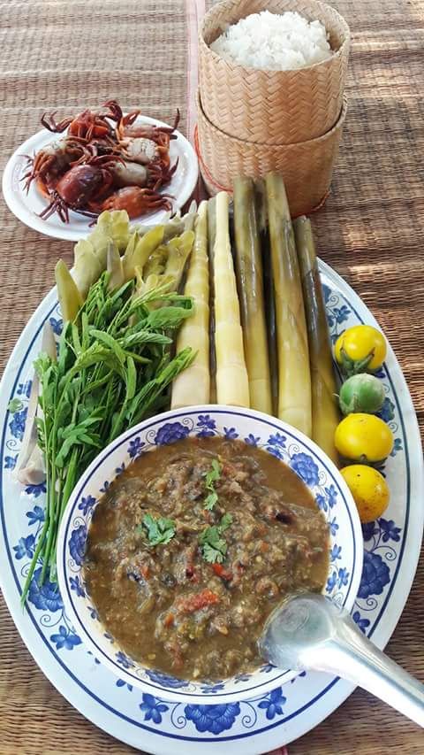 เอาปูนาไปต้มกับน้ำปลาร้า ใส่ตะไคร้ ใบมะกรูดซอยหยาบข่าทุบ... เสร็จแล้วพักให้เย็น แกะกระดองขูดเอามันปูแยกไว้แล้วเอาตัวปูไปโขลกให้แหลก ใส่มันปูที่แยกไว้ลงไปตามหลัง เติมน้ำปลาร้าที่ใช้ต้มใส่พริกย่างลงไปโขลก ปรุงรสด้วยน้ำปลาให้เข้าที่ สุดท้ายเติมต้นหอมซอย