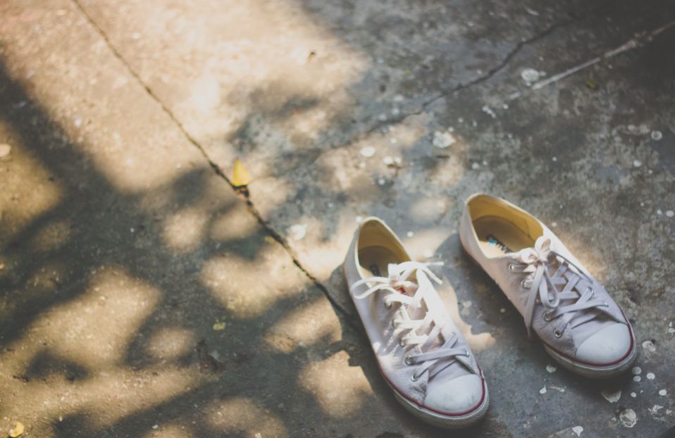 เชือกรองเท้าของใครไม่รู้ตวัดอยู่บนขอบบันได