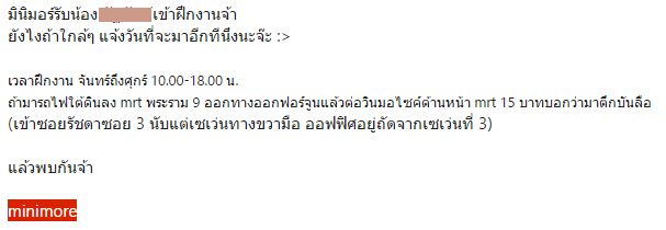 “มินิมอร์รับน้อง xxx เข้าฝึกงานจ้า” ดีใจบ้านแทบแตก แต่ก็แตกไม่ได้ เพราะตอนนั้นเป็นเวลาสามทุ่มกว่า ๆ ไอ้เราก็ตื่นเต้น ดีใจ มีหลานก็อยากบอกหลาน มีลูกก็อยากบอกลูก น่าเสียดายที่ยังไม่มี ใจนี้เต้นตุบ ๆ ไม่สามารถระงับความดีใจของตัวเองได้เลย แต่แล้วความดีใจก็หยุดชะงักด้วยความคิดมารผจญของตัวเองที่ว่า..