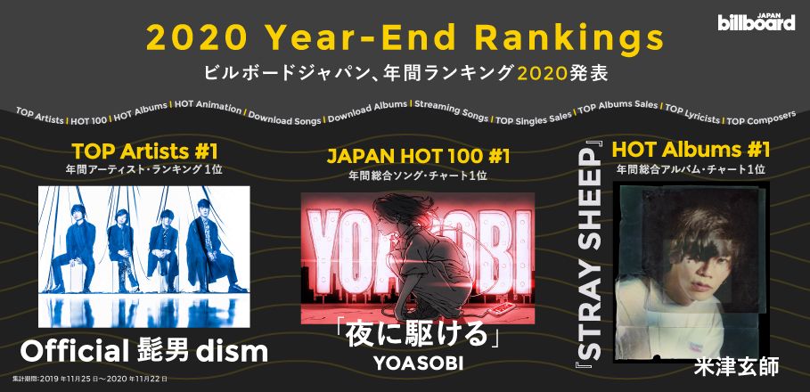 นอกจากนี้ "STRAY SHEEP" ยังได้รับรางวัลสูงสุดใน [ยอดขายอัลบั้มสูงสุด] และ [ยอดดาวน์โหลดอัลบั้มสูงสุด] ของ Billboard Japan ประสบความสำเร็จถึงสามมงกุฎครั้งแรก(ครองอันดับหนึ่ง 3 ชาร์ต) นับตั้งแต่เปิดตัวอัลบั้มดาวน์โหลดประจำปี ครั้งนี้ที่ Billboard JAPAN เราได้สัมภาษณ์ โยเนะสึ เคนชิ ผู้คว้าอันดับสูงสุดในชาร์ตนี้ เราได้พูดคุยเกี่ยวกับอิทธิพลของ โควิด -19 และเป้าหมายในปี 2021 จากความประทับใจที่เขาได้รับตำแหน่งสูงสุดในชาร์ตอัลบั้มทั่วไป
