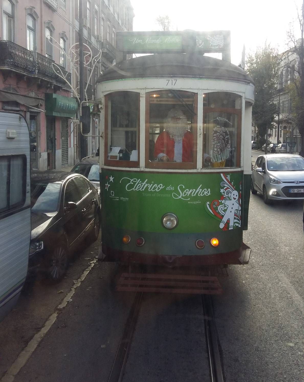 หลังจากผ่านเรื่องราวตื่นเต้นเรื่องแรกของวันนี้ไปแล้วนั้น รถรางคันต่อไปก็เข้ามาจอดเทียบป้าย คราวนี้เราได้ขึ้นอย่างแน่นอน แม้จะไม่ได้นั่งก็เหอะ ทันทีที่ก้าวขึ้นรถก็เจอกับคนขับหน้าตายิ้มแย้ม ใจดี แบมือมาตรงหน้าฉัน เขาจะเก็บค่ารถหล่อนนั่นเองย่ะ ฉันจ่ายเงินไปพร้อมกับรับเงินทอนมาแล้วเดินผ่านผู้คนที่ยืนเบียดเสียดกันอยู่เพื่อไปยังด้านหลังสุดของรถราง ซึ่งพอมีพื้นที่ให้ได้หายใจ หายคอและมีกระจกให้มองออกไปยังด้านนอก ก็พบกับรถรางคันหลังจากคันของเราขับตามมา เนื่องจากในช่วงนี้ใกล้กับเทศกาลคริสมาสต์เต็มที คนขับรถรางในบางขบวนจึงเป็นคุณลุงซานต้าหนวดเครายาวเฟิ้มสีขาวอย่างที่เห็น น่ารักไปอีกแบบ