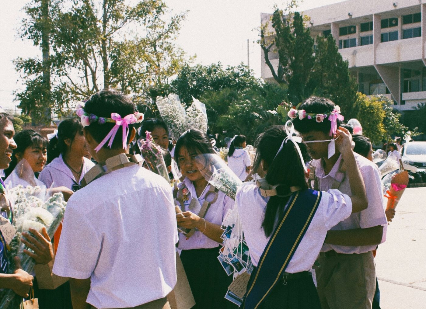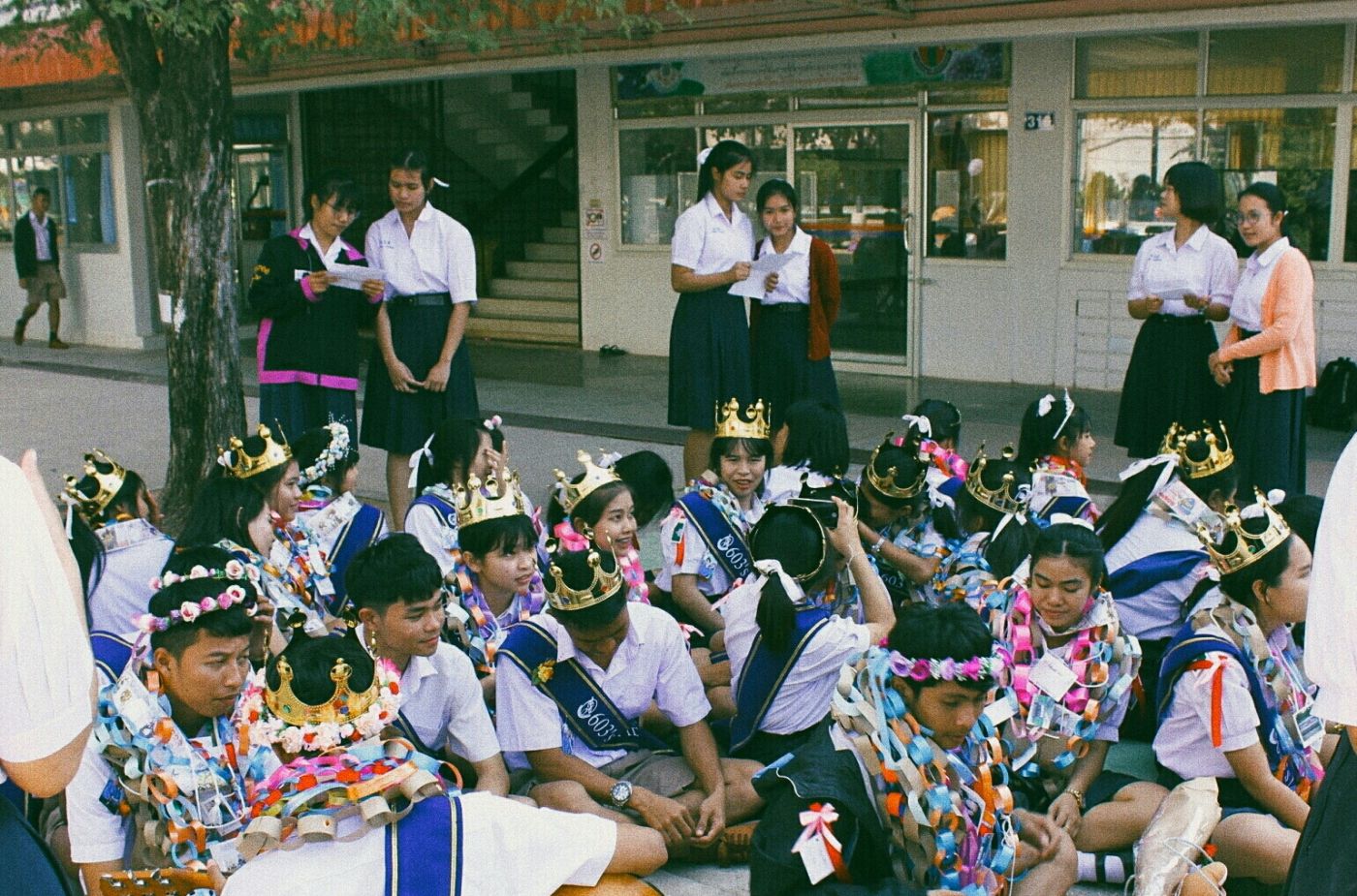 กิจกรรมที่ทำให้คือให้เข้าแถวตามเลขที่แล้วเดินเรียงกันผ่านธงรด. ไปให้คณะครูปักดอกไม้ให้ ฉันได้ตรงกับอาจารย์ป้าท่านหนึ่งซึ่งไม่เคยเรียนด้วย แต่ได้รับคำอวยพรและถามไถ่