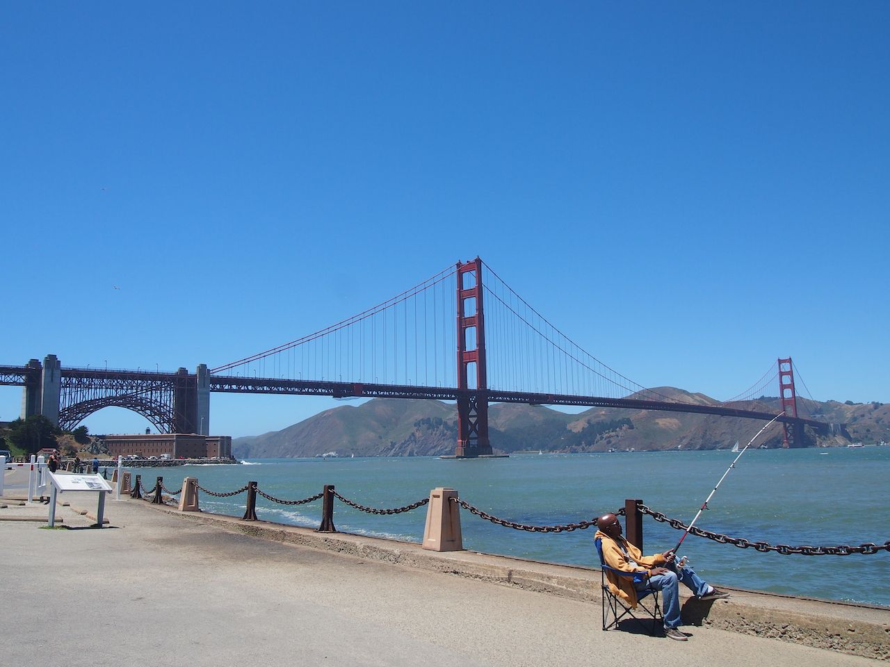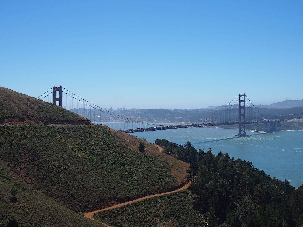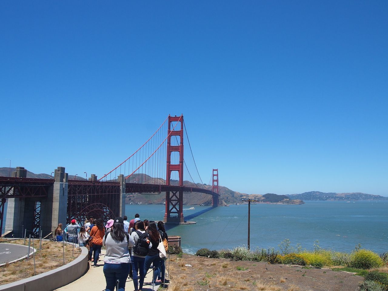 พี่คริสขับรถเข้าเมืองมาปล่อยเราที่จุดชมวิว สะพาน Golden Gate ตอนสายๆ