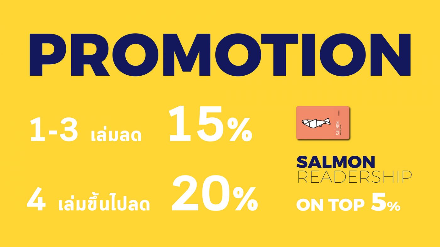 —สมาชิก SALMON READERSHIP รับส่วนลดเพิ่มอีก 5% (หากลืมนำบัตรมา สามารถบอกเบอร์โทรศัพท์ ชื่อนามสกุล หรือ หมายเลขสมาชิกแทนได้นะ