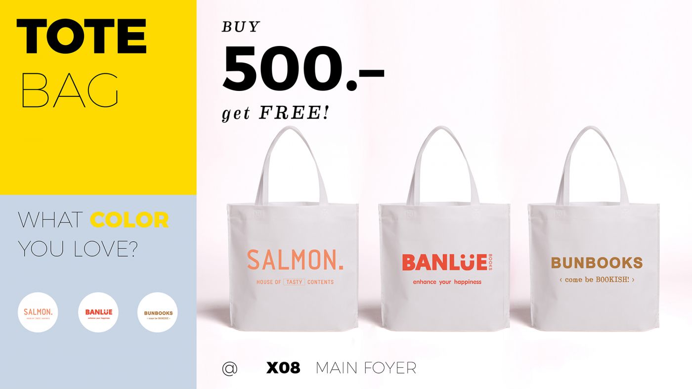 —ซื้อครบ 500 บาท (หลังหักส่วนลด) รับฟรี WHITE TOTE BAG 1 ใบ เลือกลายใดก็ได้ที่ชอบ แต่ละลายมีจำนวนจำกัด ถ้ามาช้าลายที่ชอบอาจจะหมดก่อนนะ
