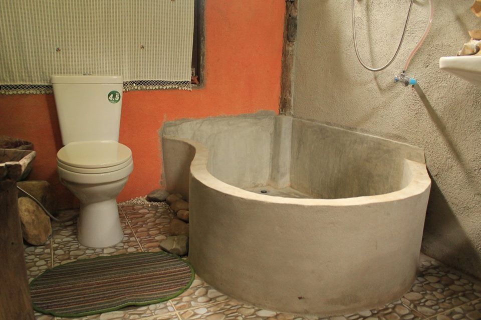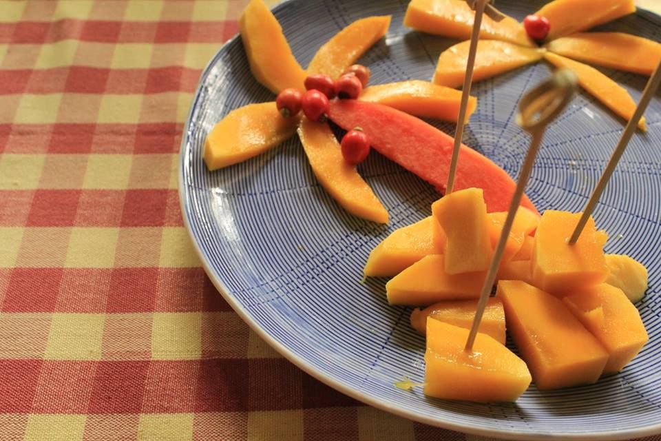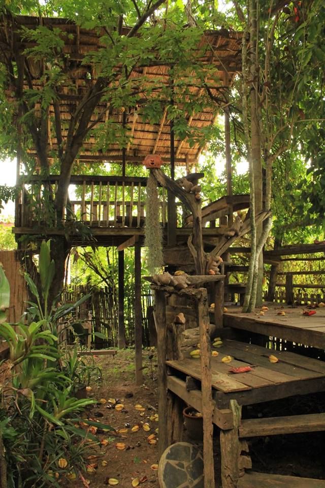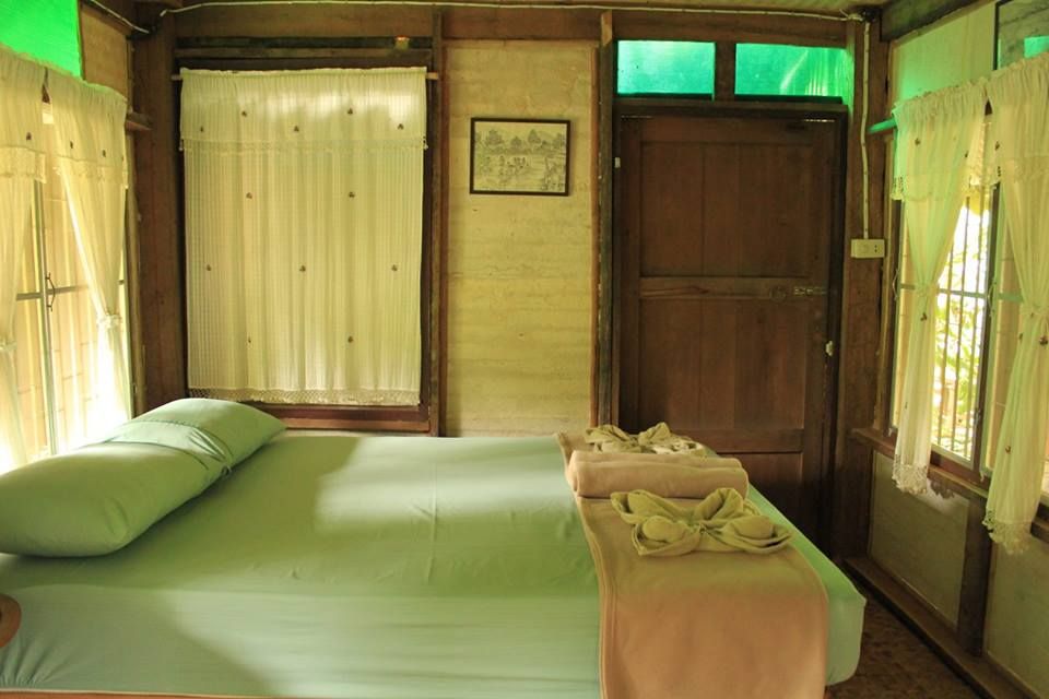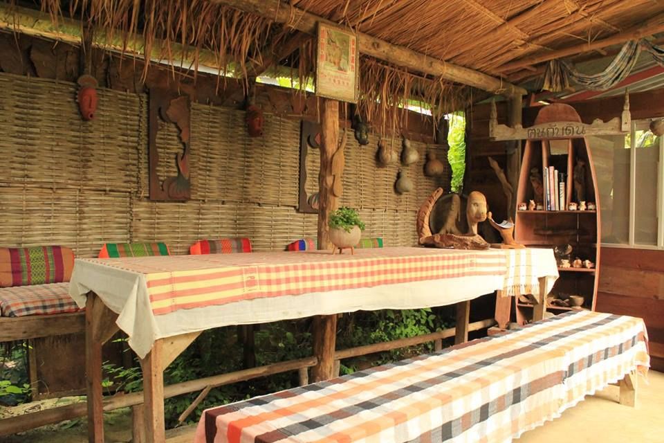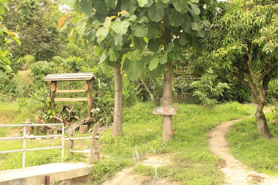 เรายืนสำรวจพื้นที่รอบๆ ด้วยสายตาได้ไม่นานนัก พี่ทิพย์และพี่อ้วน ผู้ริเริ่มสร้างสรรค์พื้นที่แห่งนี้ก็ออกมาต้อนรับเราอย่างเป็นกันเองในทันที พร้อมกับชาเขียวเย็นรสชาติดีและมะม่วง...ที่ตกแต่งใส่จานมาอย่างน่ารัก ถือเป็นการต้อนรับที่อบอุ่นราวกับญาติมิตรเลยทีเดียว เราเกริ่นนำที่ไปที่มาของกันและกันจากนั้นก็ขอเยี่ยมชมพื้นที่ด้านหลังบ้านซึ่งพี่ทิพย์กับพี่อ้วนดัดแปลงไว้เป็นที่พักสำหรับต้อนรับนักเดินทางหัวใจสีเขียว
