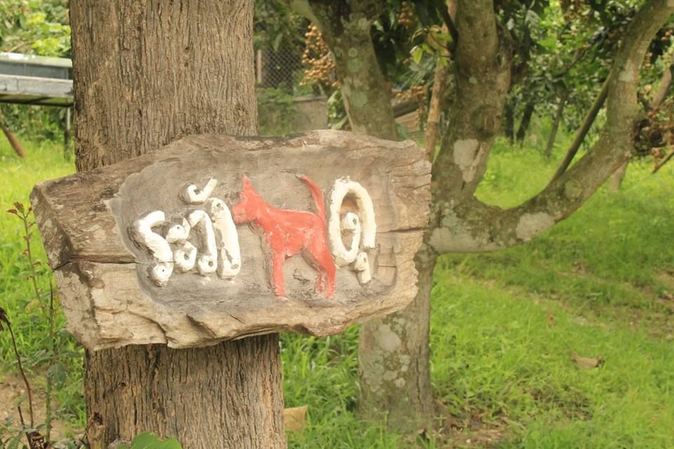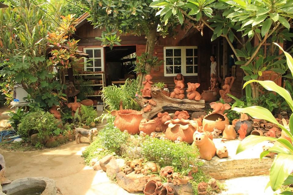 เราดับเครื่องยนต์ที่หน้าบ้านหลังน้อยซึ่งตั้งอยู่ใจกลางของหมู่บ้าน บริเวณลานด้านหน้าเต็มไปด้วยจักรยานนับสิบคัน ส่วนหนึ่งของพื้นที่แบ่งเป็นร้านกาแฟและไอศกรีมที่ตกแต่งด้วยไม้เก่าแบบเรียบง่าย มองเข้าไปที่หน้าบ้านซึ่งอยู่ถัดไปด้านในมีตุ๊กตาปั้นดินเผารูปสิงสาราสัตว์มากมายอวดความน่ารัก น่าเอ็นดูแข่งกับความสดใสของไม้พุ่มสีเขียวนานาชนิด มีป้ายเล็กๆ เขียนชื่อสถานที่ให้เราได้แน่ใจว่าเดินทางมาถึงเป้าหมายของเราแล้ว "บ้านคนกับดิน โฮมสเตย์"