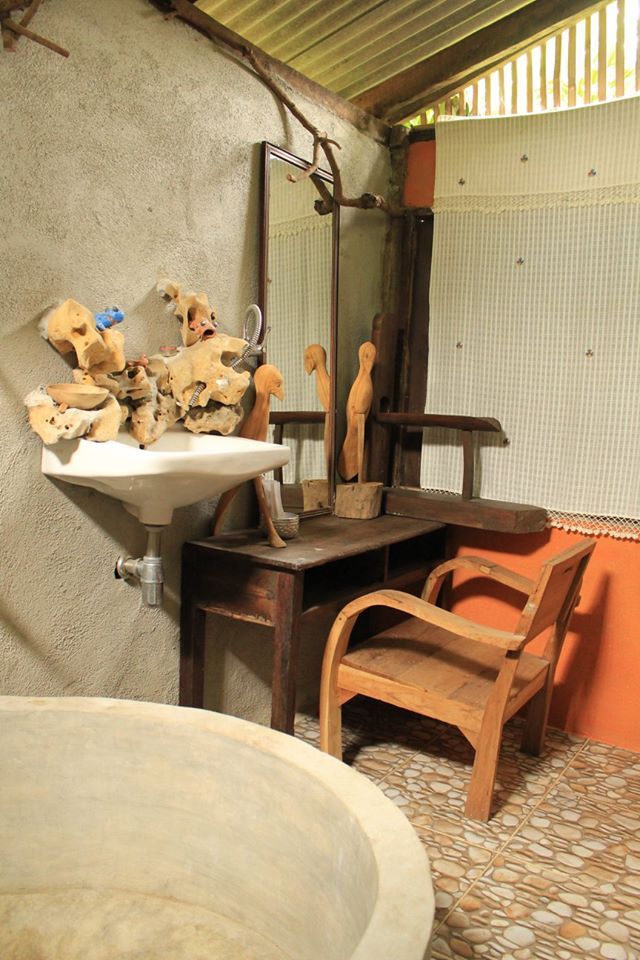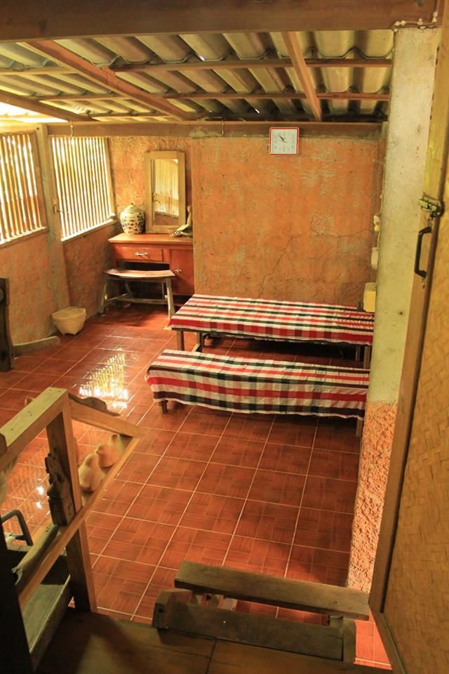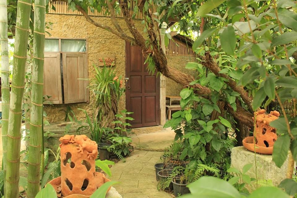 เมื่อผ่านประตูบานน้อยที่กั้นระหว่างตัวบ้านและร้านกาแฟด้านหน้ากับที่พัก ราวกับหลุดเข้าไปอีกโลกหนึ่ง มองไปทางไหนก็เต็มไปด้วยต้นไม้สีเขียว ทั้งไม้พุ่ม ไม้เลื้อย หรือต้นสูงใหญ่ ไม่เว้นแม้แต่พืชผักสวนครัวที่ปลูกแซมอย่างแนบเนียนกับบริบทรอบข้าง จู่ๆ เราก็รู้สึกว่าตัวเราเล็กลงทันใด ภายในบริเวณเนื้อที่ 130 ตารางเมตร ประกอบด้วยบ้านหลังเล็กๆ 4 หลัง สร้างด้วยน้ำพักน้ำแรงและความคิดแบบธรรมชาติของพี่ทั้งสอง สไตล์ของบ้านมีกลิ่นอายความเป็นชนบทของภาคเหนือผสมกับความเป็นสมัยใหม่ที่ไม่ล้ำเกินไป ขนาดของบ้านก็พอเหมาะกับการพักผ่อนเงียบๆ ในช่วงวันหยุด จริงๆ พี่อ้วนนั้นเป็นนักจัดสวนตัวยงที่กวาดรางวัลมาก็มาก แต่เมื่อสอบถามถึงแนวคิดการจัดสวนแห่งนี้ พี่อ้วนกลับบอกว่าไม่มีกฎเกณฑ์อะไรมากมาย ไม่ได้ใช้หลักการอะไรเป็นพิเศษ เพราะอยากให้ออกมาเป็นธรรมชาติ ธรรมดา ไม่ประดิษฐ์