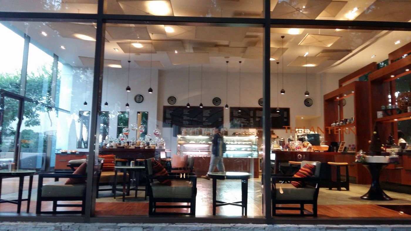 ร้านกาแฟในโรงแรมที่เราฝึกงาน เราชอบที่นี่มาก ชอบเค้กที่ขาย เครื่องทำกาแฟแบบเมนน่วลที่มีอายุถึง 10 ปี บรรยากาศในร้านนี้สบายๆ มาก มีพี่ๆ บาริสต้าสาวสวยใจดีสามคน อีกทั้งยังตั้งอยู่ริมแม่น้ำเจ้าพระยา มองเห็นวิวแม่น้ำ และมองเห็นมุมเย็นใจของเราด้วย ชอบหมดเลย