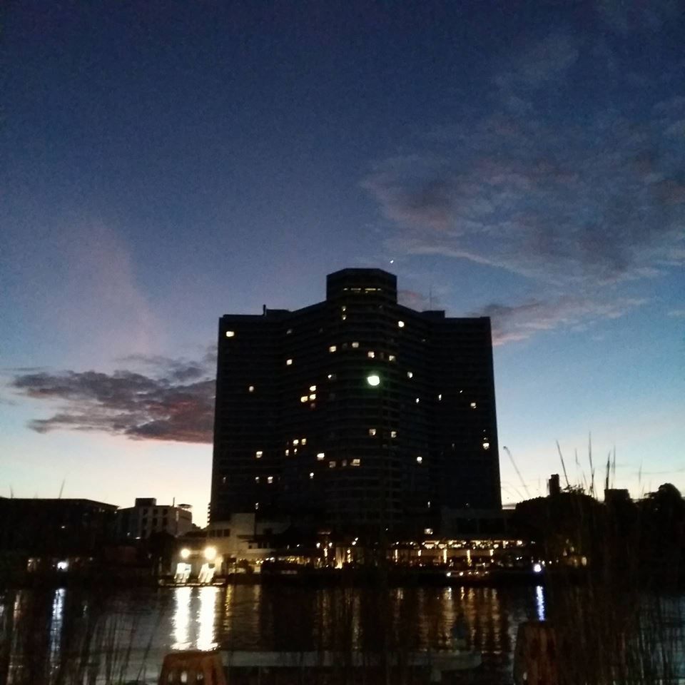 ด้วยความที่กะเช้าเข้างานตีห้า เราจึงมีโอกาสได้เห็นภาพนี้บ่อยๆ เป็นภาพโรงแรมฝั่งตรงข้ามที่กั้นกันด้วยแม่น้ำเจ้าพระยา ในเวลารุ่งเช้า
