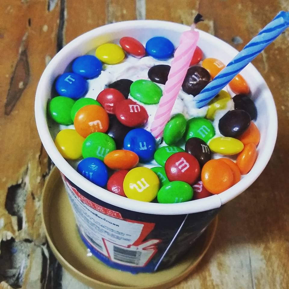 รูปนี้เป็นรูปแรกที่เราถ่ายในโทรศัพท์เครื่องนี้ เพราะเราได้โทรศัพท์นี้เป็นของขวัญจากแม่ในปีที่อายุ21 และไอศครีมโรยเม็ดช็อกโกแลต M&M นี้ เพื่อนเรากับแฟน(ของเพื่อน)ทำมาเซอร์ไพรซ์เราตอนสามทุ่มที่หอในวันนั้น ก็เลยกลายเป็นรูปแรกที่เราถ่ายในโทรศัพท์