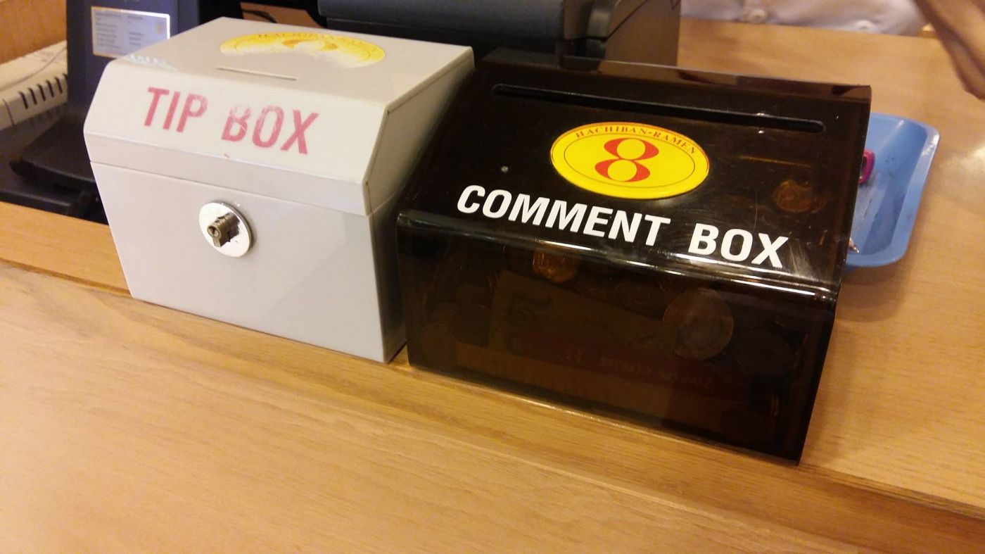 คอมเม้นต์บ๊อกซ์มีเงินเต็มเลย ตลกอะ 5555555 และเท่าที่เราสังเกต ราเม็งเจ้านี้มีเหรียญเต็มคอมเม้นต์บ๊อกซ์ทุกสาขาด้วยนะ