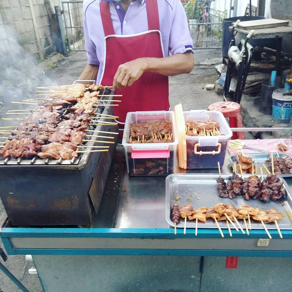 ปกติเราไม่มีทางตื่นเช้ามาทันร้านหมูปิ้งตอนเช้าแน่นอน แต่เช้าวันนั้นเรายังไม่ได้นอนจากอาการนอนไม่หลับ (คนละวันกับรูปท้องฟ้าสีฟ้าอมชมพู) เราก็เลยคิดว่า ไหนๆ ก็นอนไม่หลับละ อย่าให้เสียเที่ยว ออกไปกินหมูปิ้งกับน้ำเต้าหู้ปาท่องโก๋ดีกว่า เจ้านี้ดีที่สุดจริงๆ หมักหมูอร่อยมาก ไม้ละ 5 บาท มันไม่เยอะไป ตับย่างก็อร่อย และขายหมดเร็วมากกกก