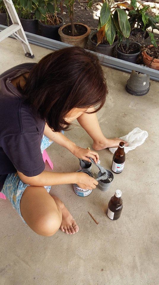 เด็กหญิงคนนี้ดูหงอยเหงา ในมือของเขามีทินเนอร์ (ที่เอาไว้ผสมสี) รูปนี้เป็นตอนที่เราไปค้างบ้านเพื่อน แลกกับการช่วยเพื่อนทาสีหลังคาโรงรถ เป็นบ้านเพื่อนที่เราชิลมาก เพราะไม่อาบน้ำกันก็ได้ ตื่นมาก็กินข้าวแล้วก็มาทาสีหลังคา ชิลยังกะอยู่บ้านตัวเอง