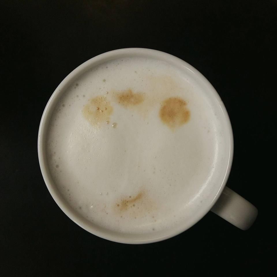 ลาเต้ไม่อาร์ต เป็นลาเต้แก้วแรกที่เรากดเองจากเครื่องชงกาแฟอัตโนมัติของที่ฝึกงาน เราว่าหน้าตามันน่ารักดี