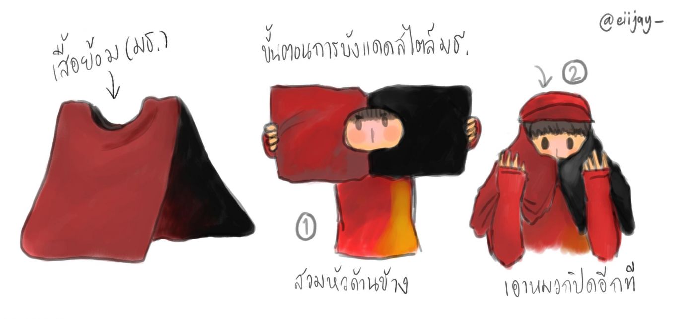 เรายกตัวอย่างของปีล่าสุดละกัน ก่อนแปรจะมีการนัดแนะว่าจะต้องเปิดmpโค้ดที่เท่าไหร่ก่อน แล้วให้ใส่เสื้อย้อมสีแดง ซึ่งทำให้พื้นหลังจะมีสีแดงล้วนและอ่านง่ายขึ้น แล้วก็ให้หยิบอุปกรณ์ต่างๆให้พร้อม ถ้าสังเกตดูจะเป็นสีขาวๆกลมๆใช่ไหมคะ เขาใช้ร่มกระดาษแปรค่ะ (ร่มแบบทางภาคเหนือของไทยอ่ะ) เวลาหุบก็จะไม่เห็น กางออกก็จะเห็นเป็นสีขาว เวลากางก็จะเร็วมากๆ พรึ่บพรั่บๆกันเลยทีเดียว เราก็ดูว่าเขาสั่งอะไร เราก็กางตามที่ใบโค้ดเราให้ทำ