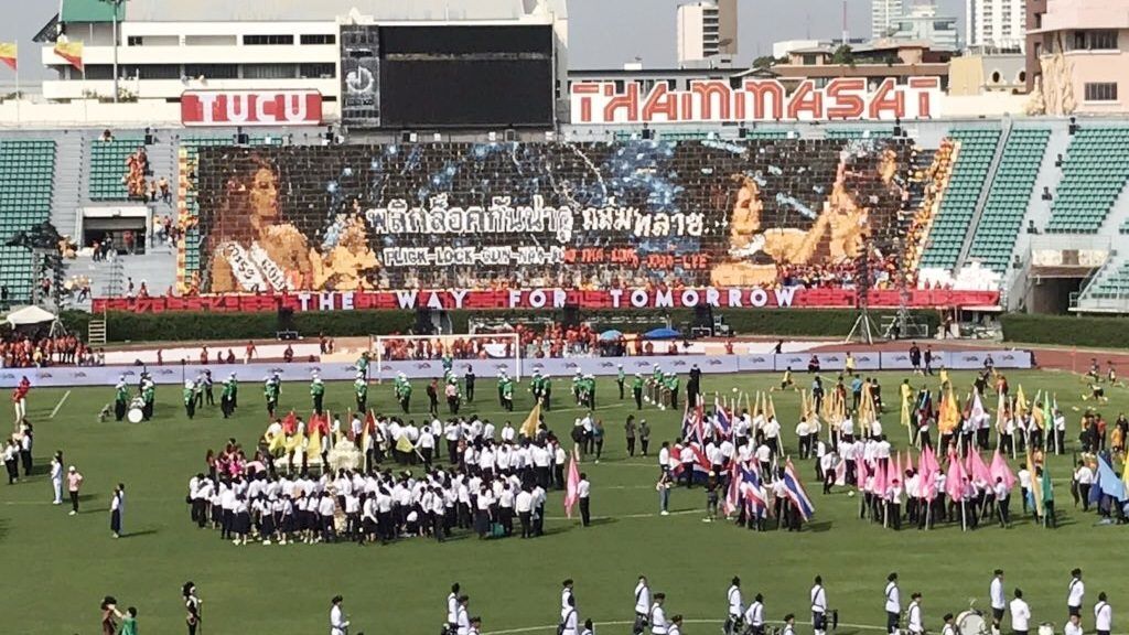 แปรอักษรจากฝั่งธรรมศาสตร์ งานฟุตบอลฯปีที่71 | ภาพจาก https://hilight.kapook.com/