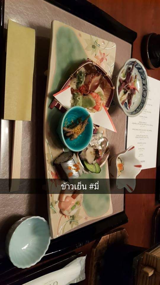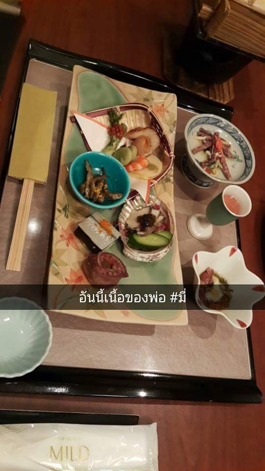 เรื่องตลกคือ ตอนเราคุยกับพ่อ จำไม่ได้ว่าเรื่องอะไร จำได้แค่พ่อเราบอกว่าเราเป็นชิบะ เราก็ปากไวไง เราเลยตอบไปว่า งั้นป๊าเป็นอะกิตะ (ชื่อพันธุ์สุนัขในญี่ปุ่น) พนักงานที่เสิร์ฟเราจะคอยยืนดูแลเราตลอดหากเราต้องการอะไร ไม่ได้ยืนแบบกดดันนะ แต่ยืนเหมือนรอว่าเราต้องการอะไรเพิ่มไหม พอเขาได้ยินที่เราคุยกับป๊า ปุ๊ป เขาก็หัวเราะแบบต้องเอามือปิดปากอะ ทีนี้ป้าเราเห็นป้าเราเลยขำตาม ละก็บอกว่า นี่ชิบะ นี่อะกิตะ 555555 เอออออ เป็นหมาทั้งคู่ 5555 เขาก็ยิ่งขำใหญ่ พอขำเสร็จเขาก็ขอโทษอะที่หัวเราะ
