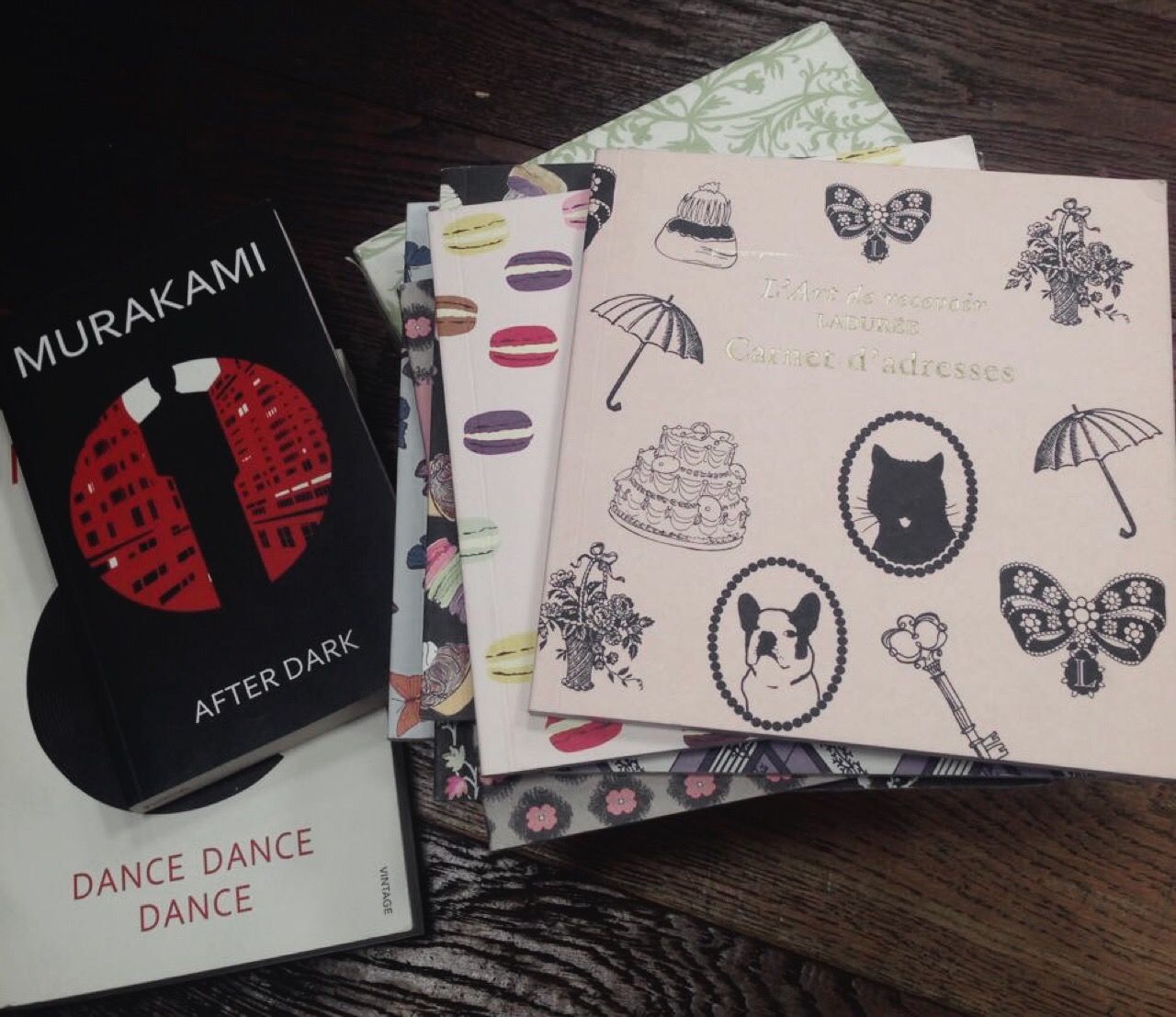 ครั้งนี้ฉันได้หนังสือ After dark และ Dance dance dance ของนักเขียนชาวญี่ปุ่นคนโปรด Haruki Murakami ซึ่งฉบับภาษาไทยที่มีอยู่ก็ยังนอนสงบนิ่งอยู่บนชั้น คาดว่าน่าจะดองอีกตามเคย ถ้าหนังสือพูดได้ก็คงจะบอกกับเราว่าอ่านฉันบ้างเถอะจ้า ซื้อไปดอง กองอยู่แบบนั้นไม่เกิดประโยชน์ แต่ซื้อไม่เท่ากับอ่านฉันใดก็ฉันนั้น และแปรผกผันกันด้วย