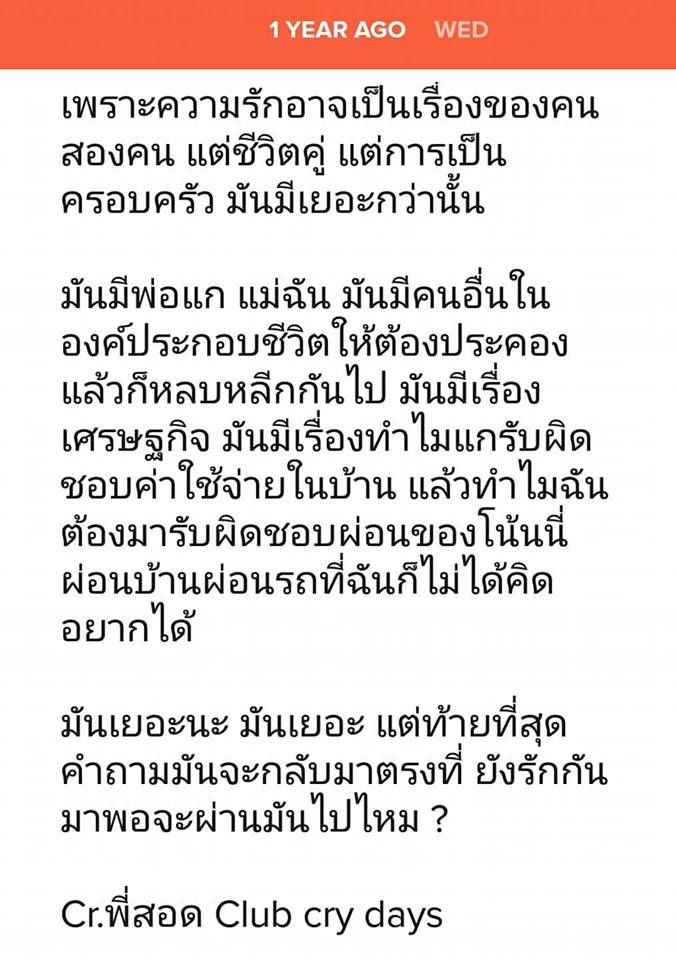 นั่งดีดงานที่ร้านกาแฟ นอกจาก ส่องดู fb น้องแล้ว ยังมีความกล้าบ้าบิ่น เปิดไปดูแฟนใหม่น้องด้วย น่ารักดี สมกันดี ดูเหมือนจะคบกันเข้าปีที่สองแล้ว อ่าาาาา พอคิดว่า ทุกคนเดินไปข้างหน้าหมดเลย ก็แอบใจหวิวๆ เหมือนกันนะ หวิวๆ ที่ไม่ได้แปลว่าเสียใจอะ รู้สึกว่า น้องควรได้เจอคนดีๆ ควรได้พบกับคนรักที่เอาใจใส่ได้มากๆ น้องโตขึ้นเยอะ มุมมองความคิดก็คงโตขึ้นเยอะ ซึ่งเหมือนกัน กุก็แก่ขึ้นเนอะ :_)