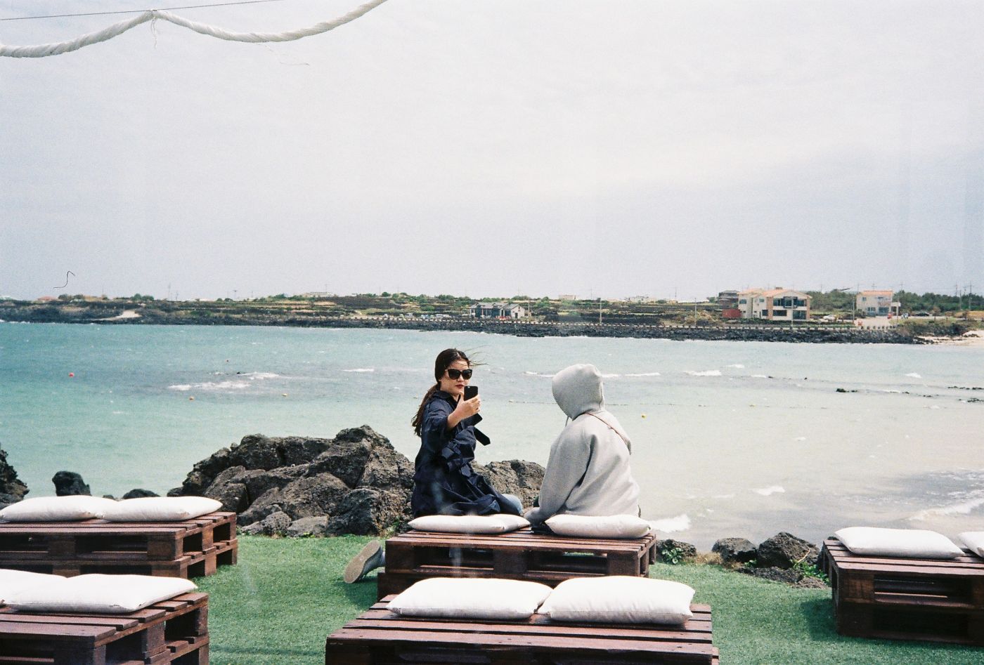 ที่คาเฟ่บนเกาะอูโด (ถ่ายผ่านกระจกร้าน)