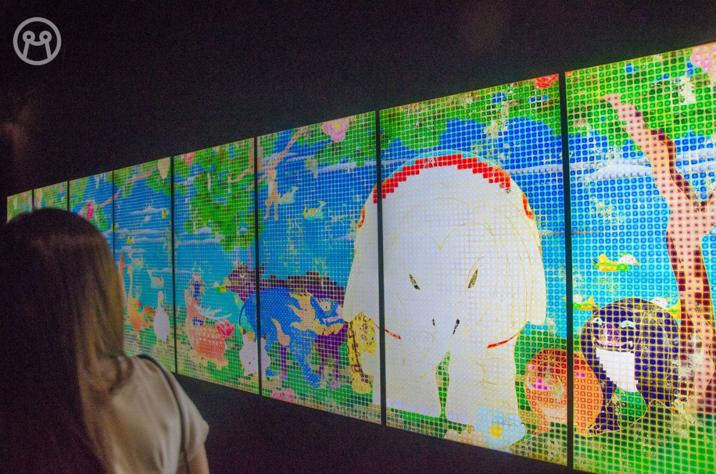 ห้องนี้ภาพสีสันสวยมากกกก เป็นการสร้างงานเลียนแบบศิลปินในสมัยเอโดะท่านหนึ่งนามว่า อิโตะ จาคุชู ที่สร้างงานศิลปินลงบนแผ่นกระเบื้องทีละแผ่น (นี่มันเอโดะพิกเซลอาร์ท!) พอมองไกลๆ จะเป็นภาพใหญ่ทั้งผืน เมื่อเดินเข้ามาใกล้ๆ ถึงจะเป็นว่าเป็นช่องเล็กๆ ต่อกัน แล้วนี่ดูเหมือนช่องนั้นเคลื่อนไหวได้ แต่เปล่าเลย ตัวภาพต่างหากที่เคลื่อนไหว ของอยู่ของมันเฉยๆ