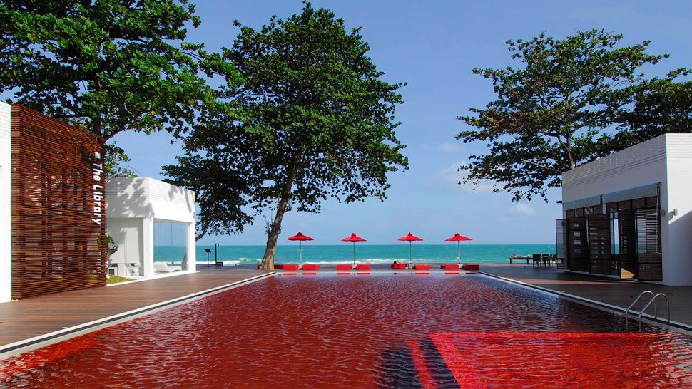 อะ ๆ ลืมบอกโรงแรมนี้เขามีจุดเด่นที่สระว่ายน้ำสีแดงนะ ดูภาพด้านล่างสิ แปลกดีเนอะ