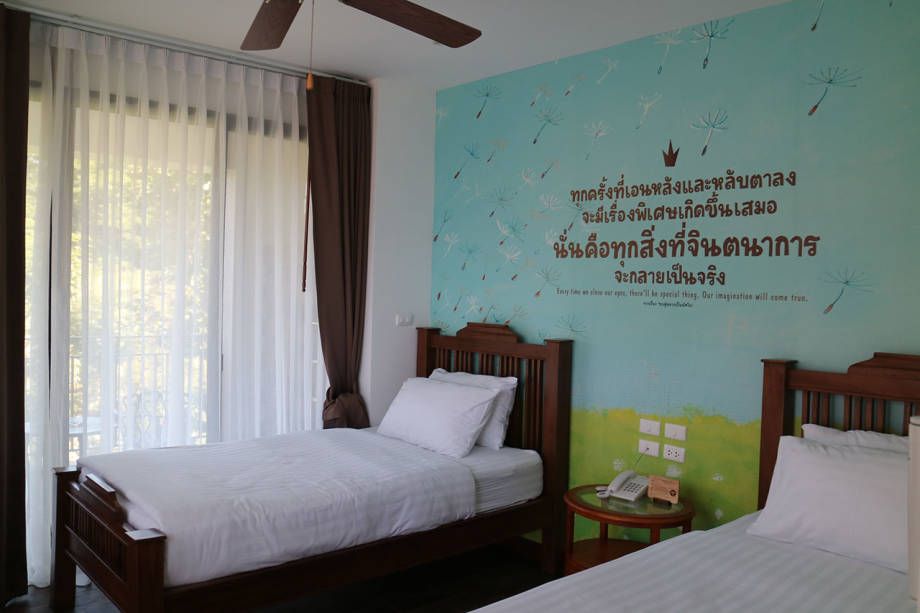 ไม่ว่าใครที่ได้มาเยือนที่นี่จะต้องรู้สึกเหมือนตัวเองได้เข้าไปสู่โลกแห่งวรรณกรรมอย่างแน่นอน ไม่ใช่แค่ห้องพักห้องเดียวนะ แต่เป็นทุกห้อง! แต่ละห้องก็จะให้ฟิลลิ่งที่แตกต่างกันไป ไม่ว่าจะเป็นลวดลายตัวอักษร หรือบทกลอนที่หยิบยกมาจากหนังสือดัง ถ้าใครได้ไปพักวิญญาณนักเขียนต้องเข้าสิงแน่ ๆ นอกจากที่พักจะมีเรื่องราวที่น่าสนใจซ่อนอยู่แล้ว คะแนนที่ได้จากเหล่านักท่องเที่ยวที่เคยมาพักยังสูงปรี๊ดอีกด้วย มีเครื่องมือการันตีขนาดนี้แล้ว รออะไร เก็บเงินกันสิคะ!
