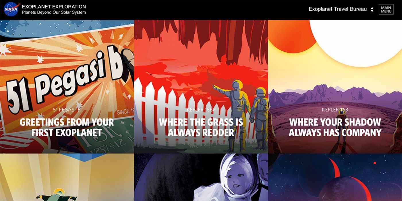 Exoplanet Travel Bureau นี่มีจริงนะ แถมทำภาพประกอบกันจริงมาก NASA คิดอะไรอยู่ 555 แต่คือเป็นภาพที่น่ารักมาก สมมติว่าเราไปถึงดาวต่างๆ แล้วเราจะเจออะไรบ้าง เป็นภาพที่เข้าใจได้ไม่ยาก และคงเป็นความฝันของใครหลายๆ คนล่ะเนอะ เรียกได้ว่าเป็นความพยายามในการสื่อสารกับคนภายนอกองค์กรอีกทางหนึ่ง น่าร้าก เป็นกำลังใจให้นักวิทยาศาสตร์ทุกคนจ้ะ