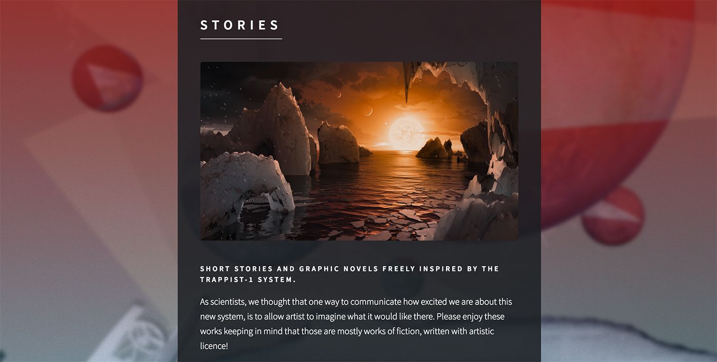 นอกจากภาพอินโฟกราฟฟิกที่ NASA กล่าวว่ายินดีให้ศิลปินได้เอาข้อมูลไปวาดภาพเพื่อสร้างจินตนาการได้ นักวิทยาศาสตร์ที่แสนจะรักและตื่นเต้นกับการค้นพบครั้งนี้ ยังให้นักเขียนได้ร่ายบทกวีและเรื่องสั้นเกี่ยวกับ TRAPPIST-1 ได้อีกต่างหาก ถ้าอยากอ่านไปได้ที่