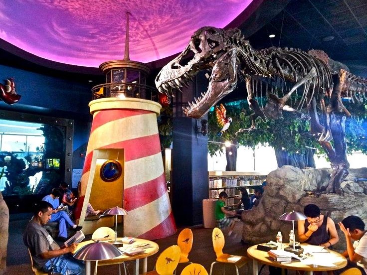ตัวห้องสมุดเอง ยังมีพิพิธภัณฑ์สัตว์น้ำเค็มที่สวยมากๆ แล้วยังมีสถานีการเรียนรู้คอมพิวเตอร์พร้อมกับซอฟต์แวร์การศึกษาและลานสำหรับให้เด็กๆเล่นกันได้อีกตั้ง 9,200 ตารางฟุต
