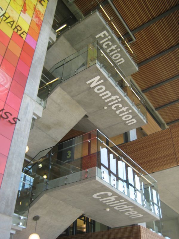 ห้องสมุดแห่งนี้มีงานศิลปะและสถาปัตยกรรมที่มีจุดมุ่งหมายเพื่อสร้างแรงบันดาลใจให้กับผู้เยี่ยมชม ในบริเวณสำหรับเด็ก ถูกออกแบบให้น่าสนใจตั้งแต่ทางเข้าหนังสือยักษ์ก่อนจะนำไปสู่พื้นที่ที่มีทั้งพิพิธภัณฑ์สัตว์น้ำเค็ม โรงละครรูปทรงคล้ายประภาคาร กระเช้าอวกาศ โมเดลจำลองโครงกระดูก T-Rex ที่มีชื่อว่า Stan แล้วก็อื่นๆ อีกเพียบ