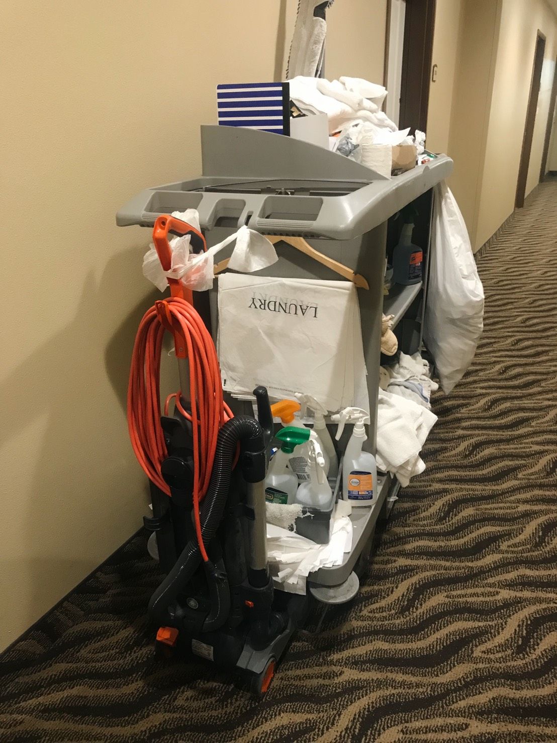 ส่งให้ห้องlaundryเอาไปซักรีดทำความสะอาดพับให้เรียบร้อย แล้วเราก็จะเอามาเติมแต่ละห้องที่ทำความสะอาดเสร็จแล้วทีหลัง พร้อมฉีดสเปรย์ดับกลิ่น เป็นอันว่า DONE!!