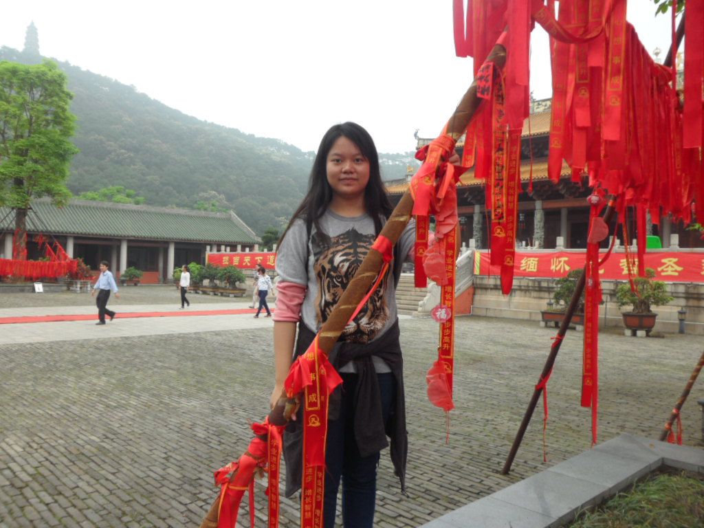 นั่งมาสักพักเราก็ถึง อากาศดีมาก สงบ เฟรชสุดๆ เราก็เดินๆดูรอบๆวัด  หลังจากนั้นก็เอาเชือกสีแดงๆมาเขียนชื่อกับคำอวยพรและไปแขวนไว้ที่ต้นไม้ ซึ่งหม่าม้าเล่าให้ฟังว่าแต่ละต้นจะแตกต่างไปตามคำขอ มีทั้งต้นที่ขอเรื่องเรียน เรื่องความรัก เรื่องเงินทองหรือพรทั่วไป