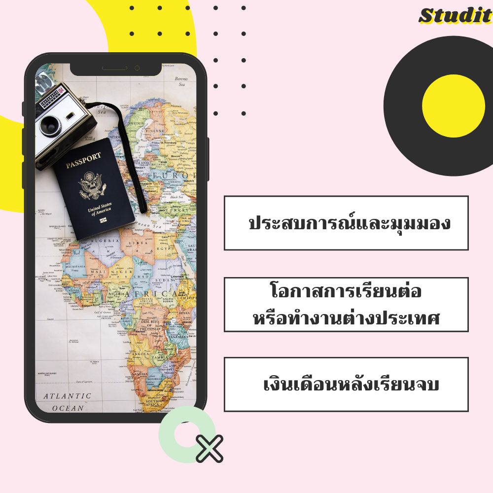 นอกจากนี้การเรียนภาคอินเตอร์ยังมีโอกาสให้น้องๆไปเรียนแลกเปลี่ยนที่ต่างประเทศ ที่มหาลัยเรียกกันว่าการทำ MOU ทำให้น้องได้มีโอกาสไปทดลองเรียนที่ต่างประเทศหรือ เด็กต่างชาติของมหาลัยนั้นได้มีโอกาสเข้ามาเรียนที่คณะเราได้ด้วยเช่นกัน