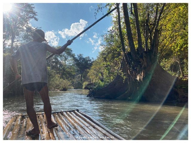 หนึ่งแพนั่งได้ 4 คนพอดี เราไปขึ้นที่ต้นน้ำ