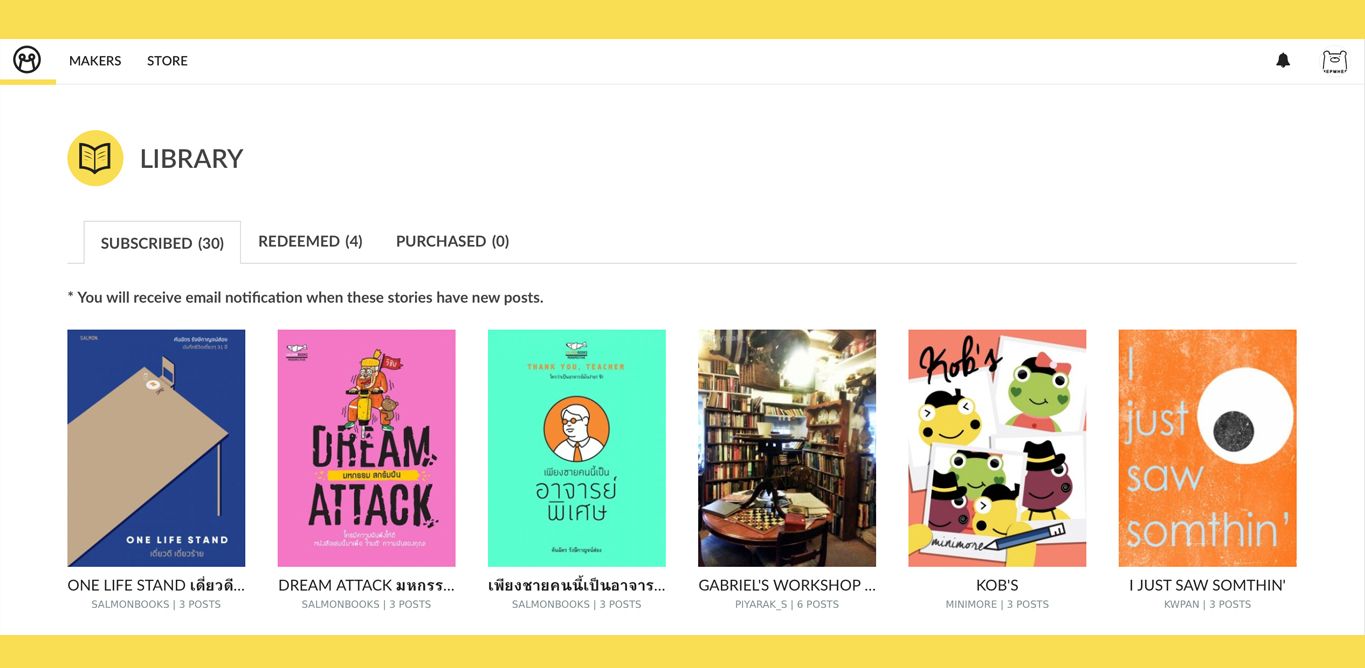 ทำไมต้อง Subscribe อะ แล้วมันมีอะไรดีเหรอ? สมมติว่าเพื่อนๆ ชอบเรื่องนี้มากเลย ถ้ามีตอนต่อก็อยากอ่านนะ การ Subscribe เหมือนการผูกสมาชิกหนังสือพิมพ์แหละ พอมีเล่มใหม่มาเขาก็ส่งมาให้เราอ่านอัตโนมัติ และจากนี้ไปก็มีการแจ้งเตือนทุกๆ ครั้งที่มีการเขียนเนื้อหาในเล่มเพิ่มเติมด้วยจ้ะ มินิมอร์เลยอยากชวนให้เพื่อนๆ Subscribe เรื่องที่ตัวเองชอบเอาไว้นะ