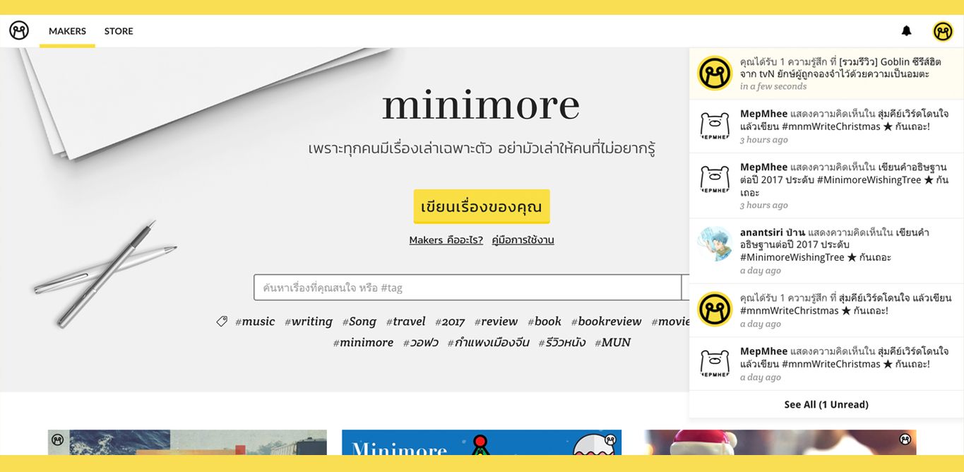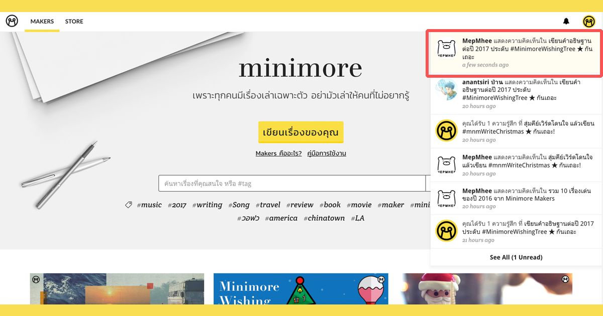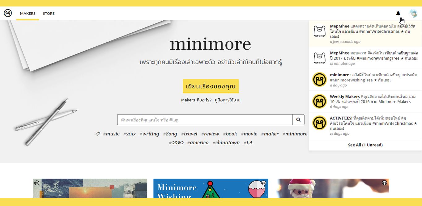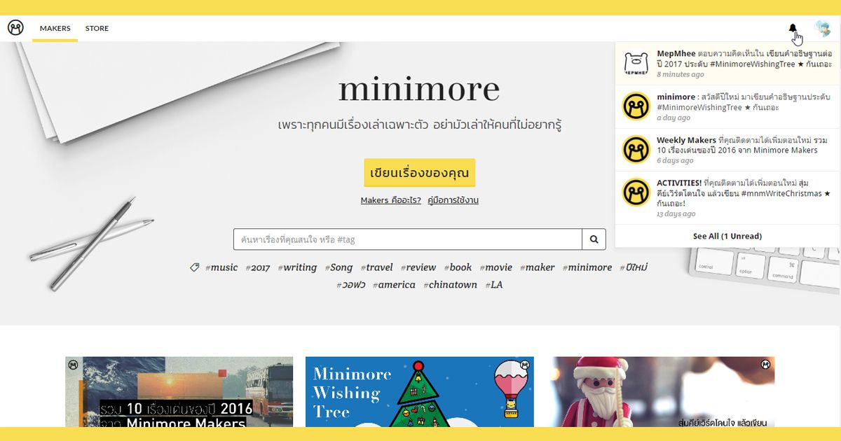 จากที่ก่อนหน้านี้มินิมอร์ได้เปิดให้ใช้ระบบคอมเมนต์แบบแสดงชื่อล็อกอินใน Minimore Makers ไป ทำให้เพื่อนๆ หลายท่านคอมเมนต์เนื้อหากันมากขึ้น ถึงอย่างนั้นก็ยังติดต่อกันยาก เพราะไม่ได้แจ้งเตือนว่ามีใครมาแสดงความคิดเห็นในเรื่องที่เราเขียนบ้าง แต่หลังจากนี้ น่าจะมีการแลกเปลี่ยนความคิดกันมากขึ้นกว่าเดิมแล้วนะ!