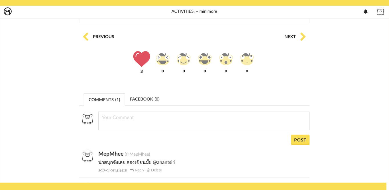 สวัสดีปีใหม่ 2017 จ้ะ! #TEAMminimore เริ่มต้นปีด้วยการมอบของขวัญพิเศษให้กับเพื่อนๆ Minimore Makers กันเลย ด้วยการเปิดฟีเจอร์ใหม่ เพื่อสนองตอบการใช้งานที่เพิ่มขึ้นทุกวัน นั่นคือระบบอับดุล เอ๊ย Notification คอมเมนต์รู้ รีพลายรู้ ไม่พลาดทุกการเคลื่อนไหวเลย