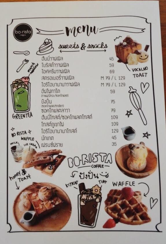 ดูความน่ารักของเมนูสิ มีลายเส้นวาดการ์ตูน น่ารักๆ สมแล้วที่เป็นคาเฟ่ของเด็กติส ศิลปากร คริ๊