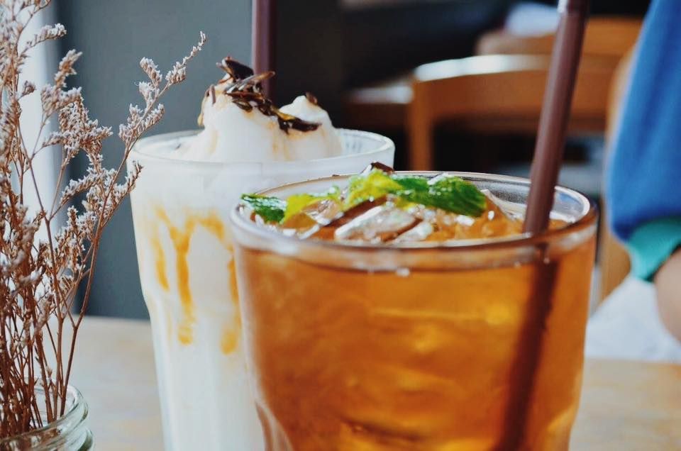 เราจะยังชื่นชมกับการตกแต่งร้านมากไม่ได้ เพราะตอนนี้กลิ่นกาแฟ กลิ่นขนม ของหวานกำลังเรียกหาเราอยู่ เรากับน้องเลยเดินไปสั่งอาหารกัน น้องเราจะชอบเครื่องดื่มที่มีส่วนผสมของนมเป็นหลัก ส่วนเราจะชอบดื่มชา หรือเครื่องดื่มที่มีรสเปรี้ยว ให้คววามรู้สึกสดชื่นแทน ในเมื่อมันลงตัวไม่ได้ว่าจะสั่งอะไร ก็สั่งมันทั้ง 2 แก้วนั้นแหละ