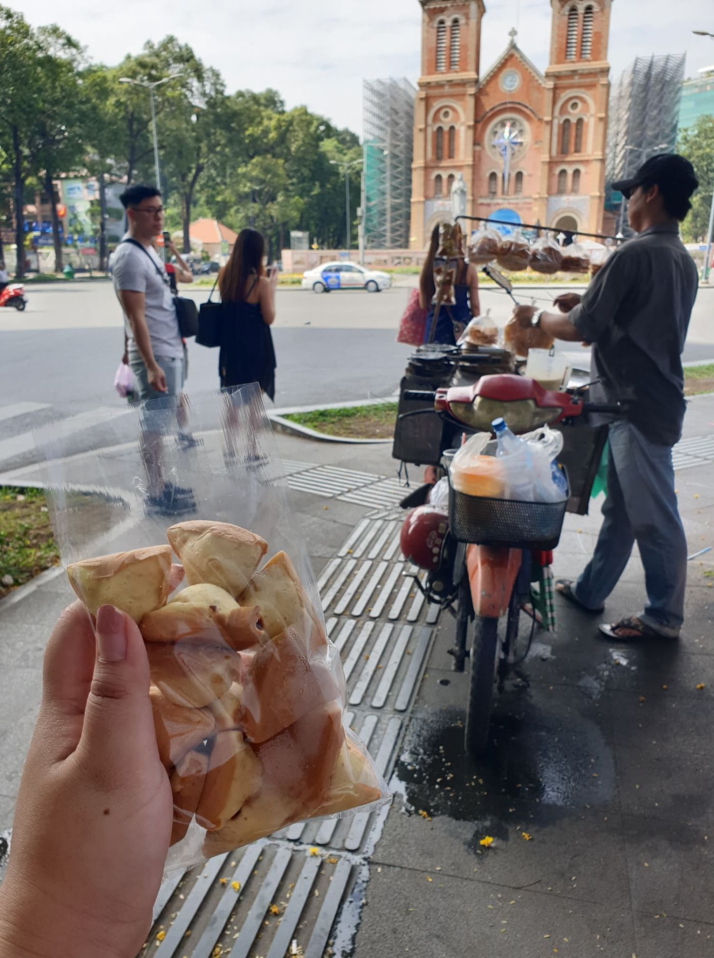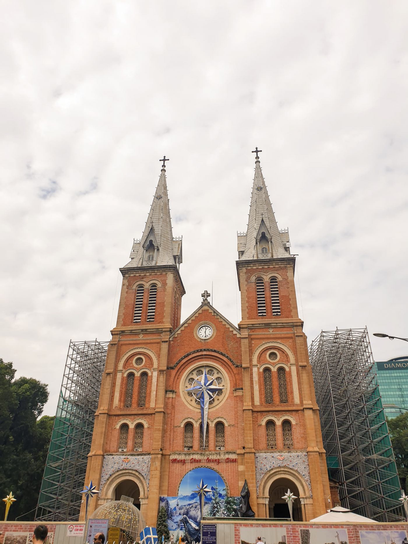 เมื่อกินเสร็จก็เรียกGrabไป Notre Dame Cathedralกัน พอไปถึงปุ๊ปปรากฏว่าตัวโบสถ์ซ่อมอยู่ มีนั่งร้านขนาบทั้งสองข้าง เลยไม่ค่อยสวยเท่าไหร่ แอบเสียใจฮืออ ในตอนที่พวกเรากำลังถ่ายรูปอยู่หน้าโบสถ์นั่นเองอยู่ๆก็มีคุุณป้าคนขายไอติมอาสาถ่ายรูปรวมให้พวกเรา อีกทั้งยังแนะนำจัดแจงหามุมที่สวยที่สุดให้เรา พวกเราก็นึกว่าป้าใจดีจังอุตส่าห์แนะนำกันอย่างดี แต่ที่ไหนได้ตอนหลังป้าก็เอาไอติมมาขายเราซะงั้นในราคาที่แพงกว่าตามร้านสะดวกซื้อทั่วไปอีกฮือออ ส่วนไอติมก็เป็นไอติมวอล์ลธรรมดาๆไม่ใช่ไอติมเวียดนามlocalๆแต่อย่างใด พวกเราเกรงใจก็เลยช่วยซื้อไปสองอัน อันนี้คงเป็นเทคนิกใหม่ของแม่ค้าเวียดนาม โดยแทนที่จะhard saleเราตรงๆ ก็มีการเสนอช่วยถ่ายรูปให้เราฟรีๆ ก่อนจะให้เราช่วยซื้อของ จริงๆก็ถือว่าไม่ได้เสียความรู้สึกเท่าไหร่ เพราะอย่างน้อยเขาก็ช่วยแนะนำ หามุมถ่ายให้อยู่พักนึงเหมือนกัน ก็ถือว่าช่วยๆกันไป