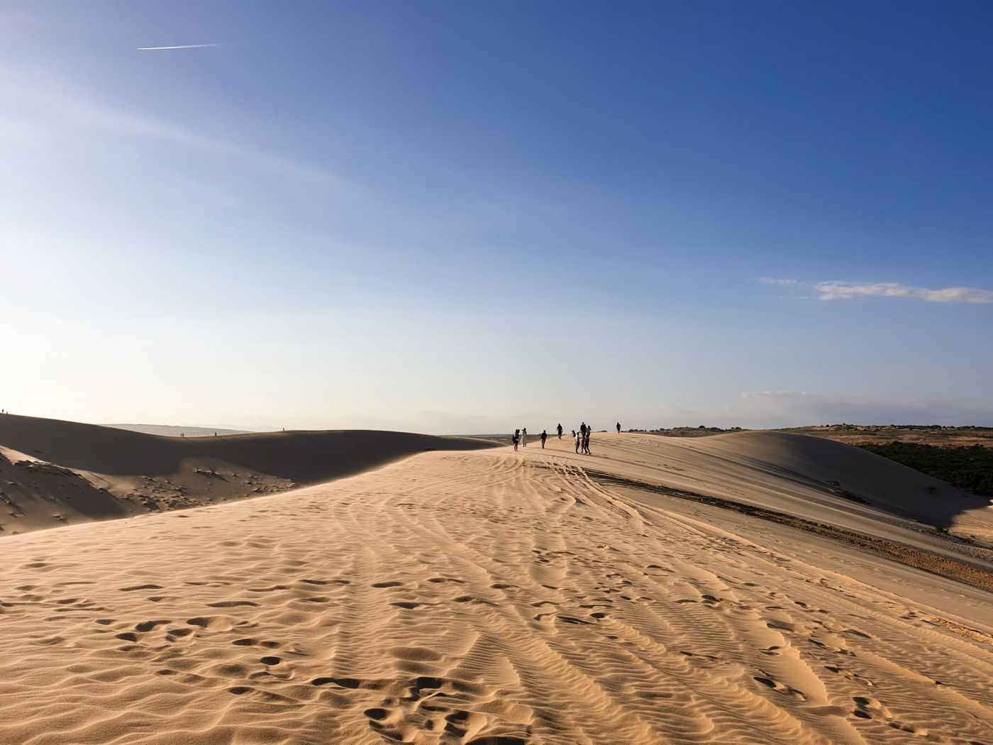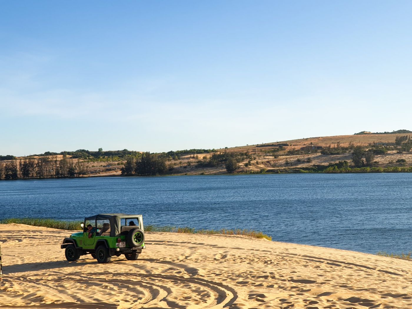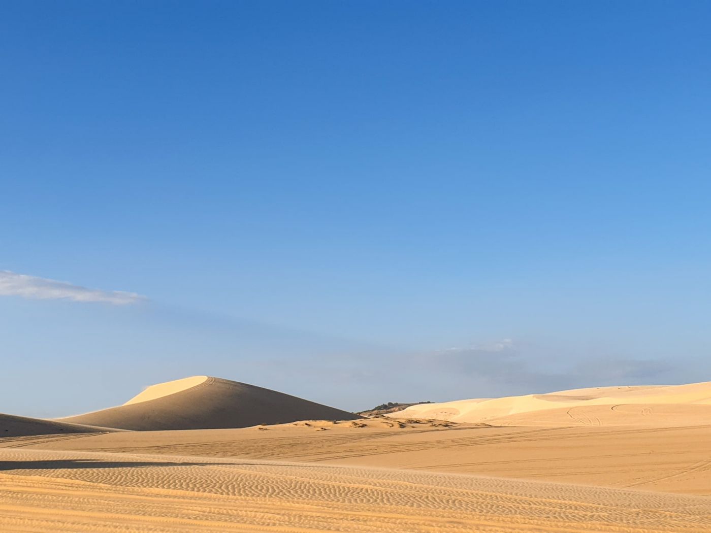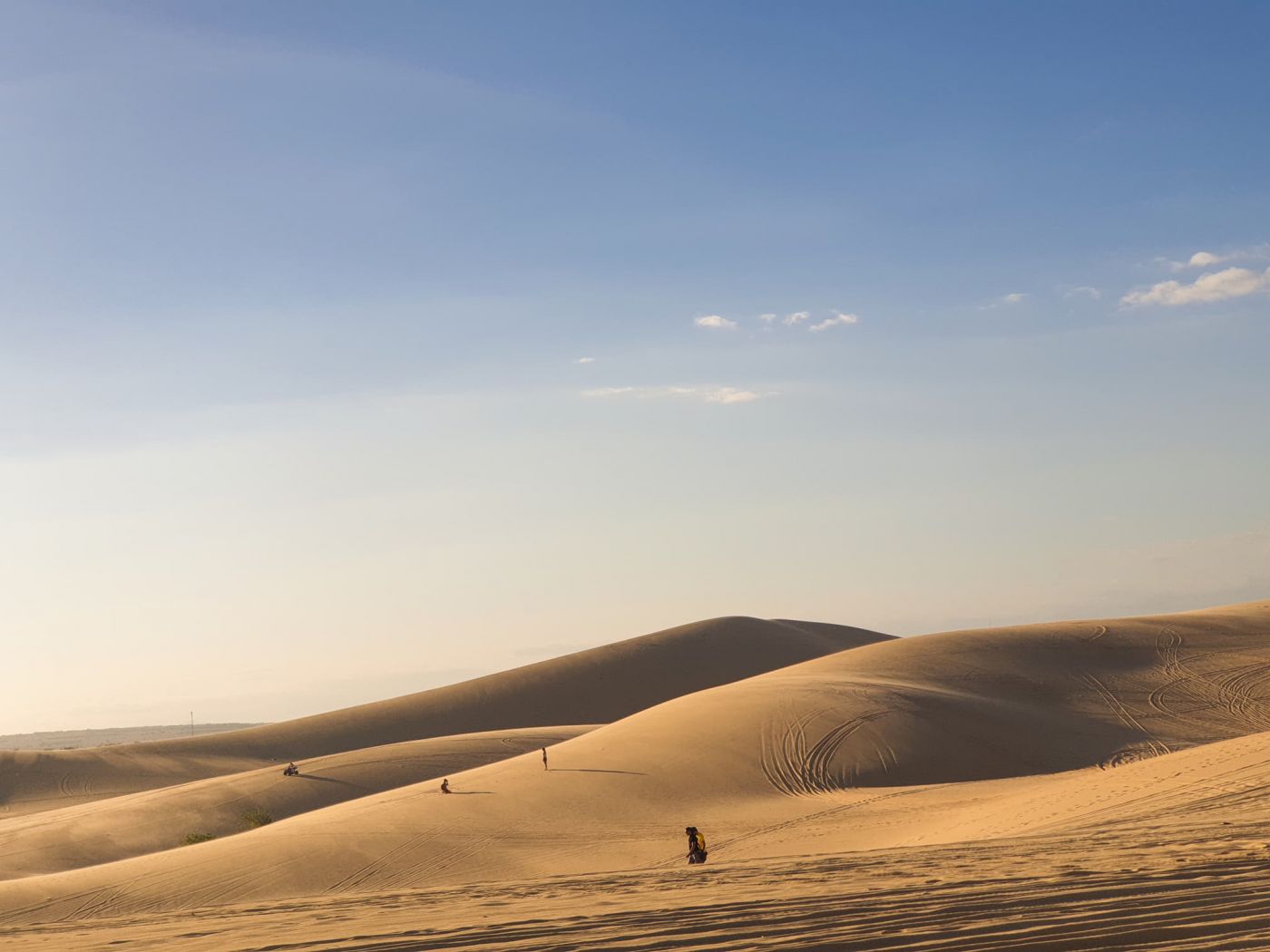 ที่ต่อมาคือ White sand dunes ใช้เวลาขับรถค่อนข้างนานกว่าสองที่แรก น่าจะประมาณ 30 นาทีได้ พอมาถึงพี่คนขับก็พาเราไปซื้อแพคเกจรถATV+รถjeepขึ้นไปบนเนินทราย ราคาต่อคนแสนเจ็บปวดอยู่ที่คนละ 300,000 ดอง หรือ ประมาณ 450 บาท ฉันเลยพยายามต่อราคาดู เพราะเคยอ่านกระทู้ว่ามีคนต่อสำเร็จมาแล้ว ต่อไปต่อมาพี่เขาก็ยอม แต่ว่าจะไม่ขับไปริมทะเลสาบให้ ด้วยความเสียดายว่าไหนๆก็มาแล้วเลยยอมจ่ายราคาเต็มไป